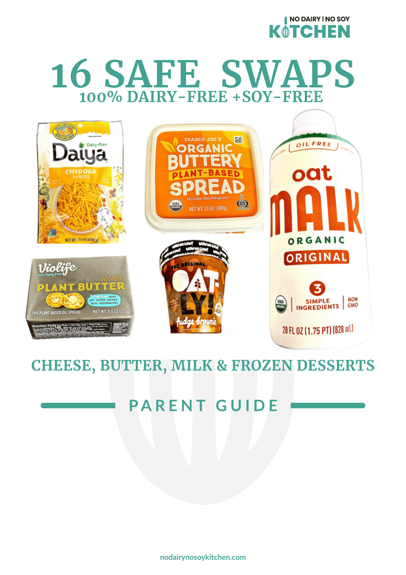 Instantly download 16 dairy-free + soy-free product swaps for stress-free eating. Only $3 — or free with any dessert bundle purchase.